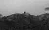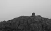 Eg såg mot huset. Ein gamal grunnmur av stein.